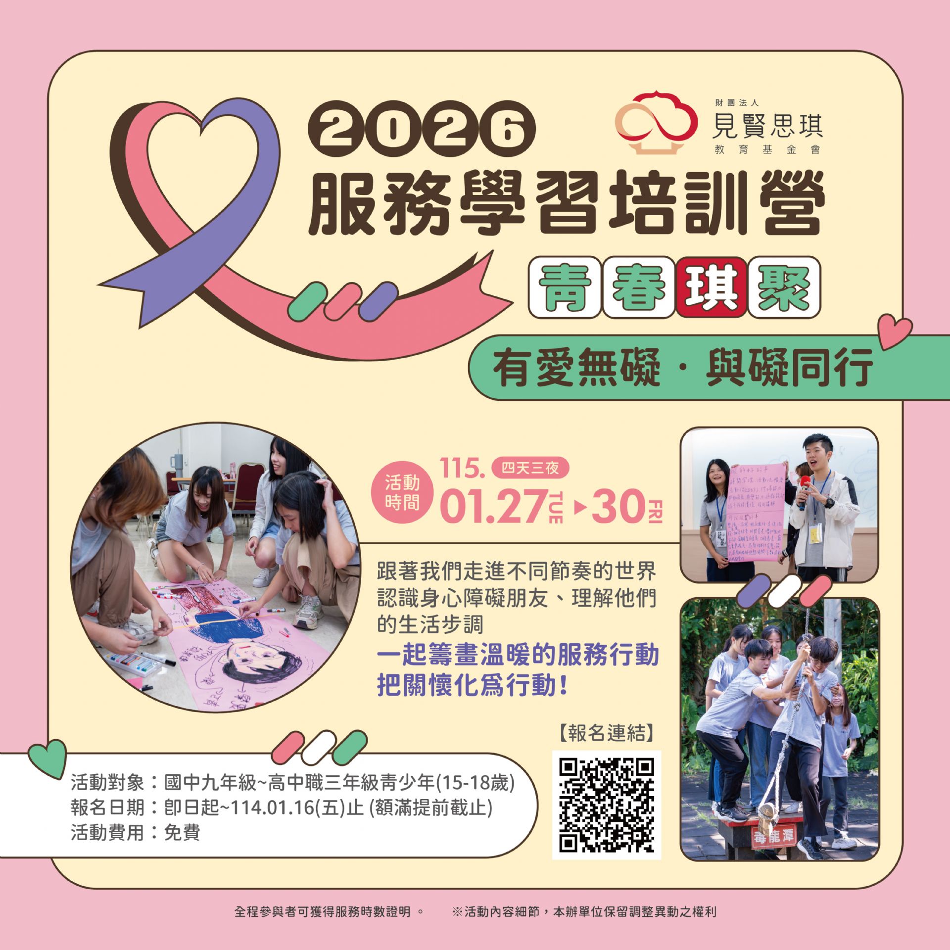 2026服務學習培訓營~青春琪聚 有愛無礙,與礙同行