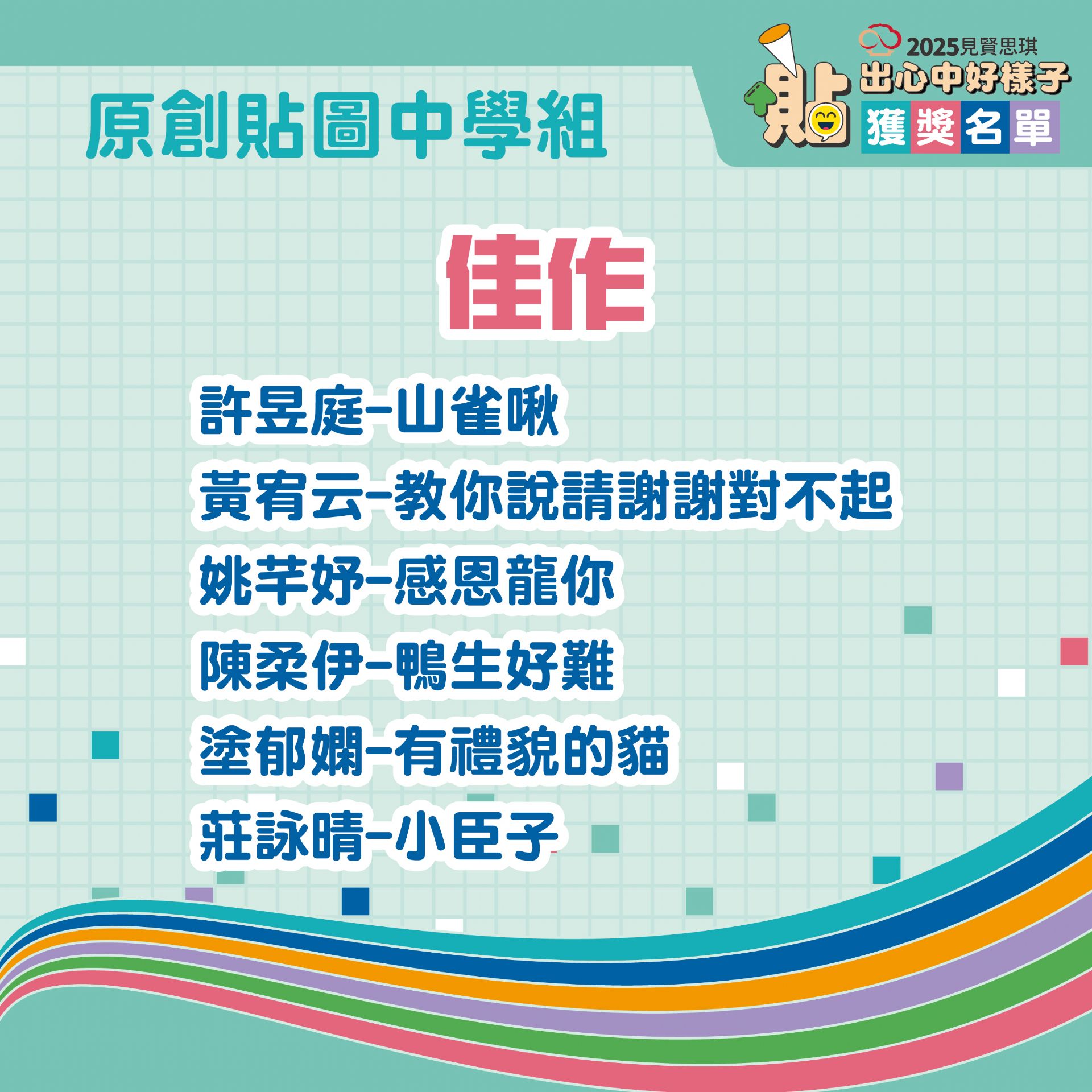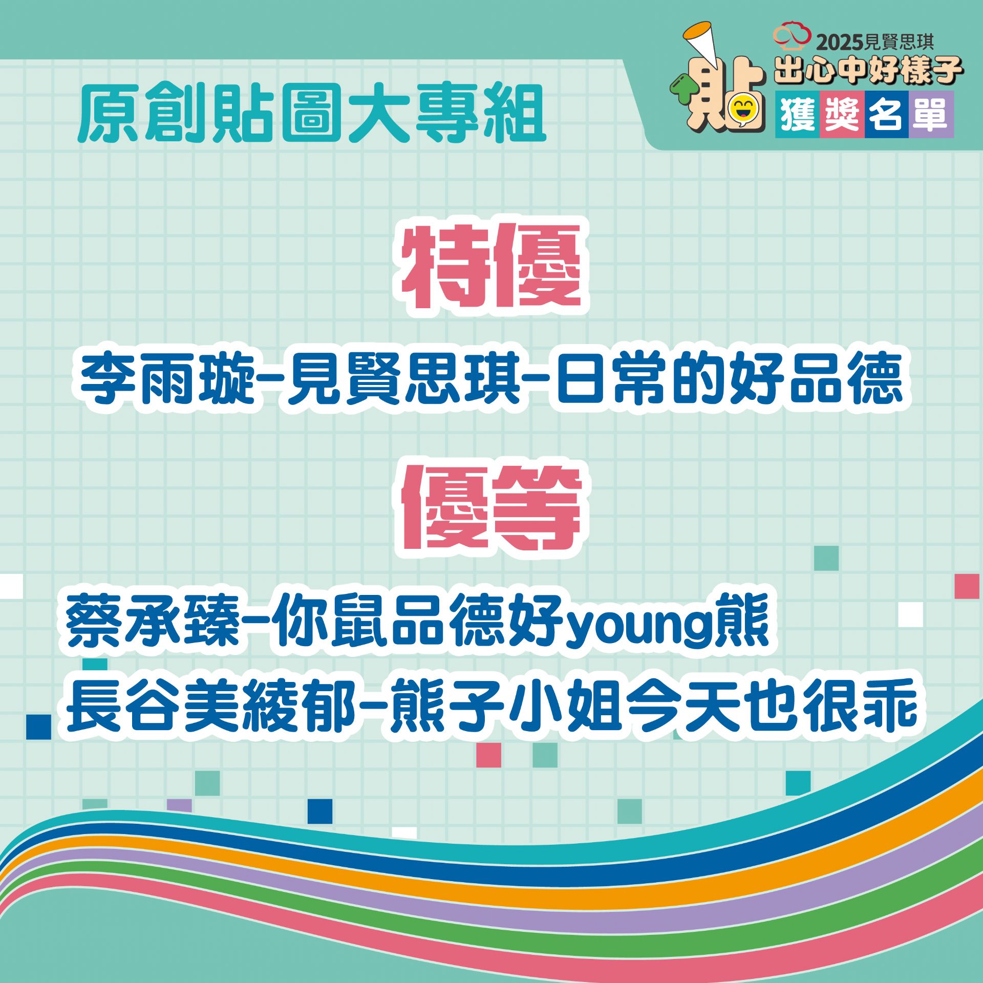 【得獎名單】2025貼出心中好樣子品德貼圖徵選