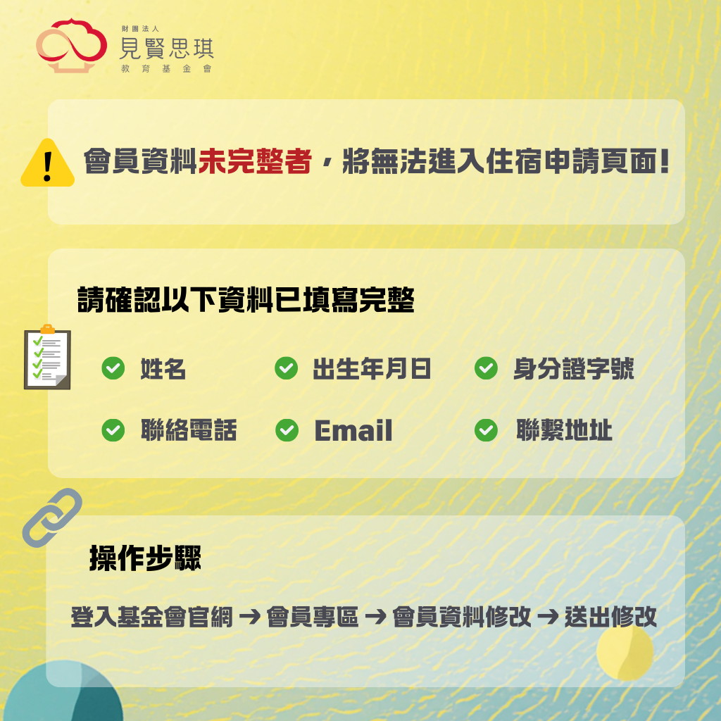會員資料未完整者,將無法進入住宿申請頁面。