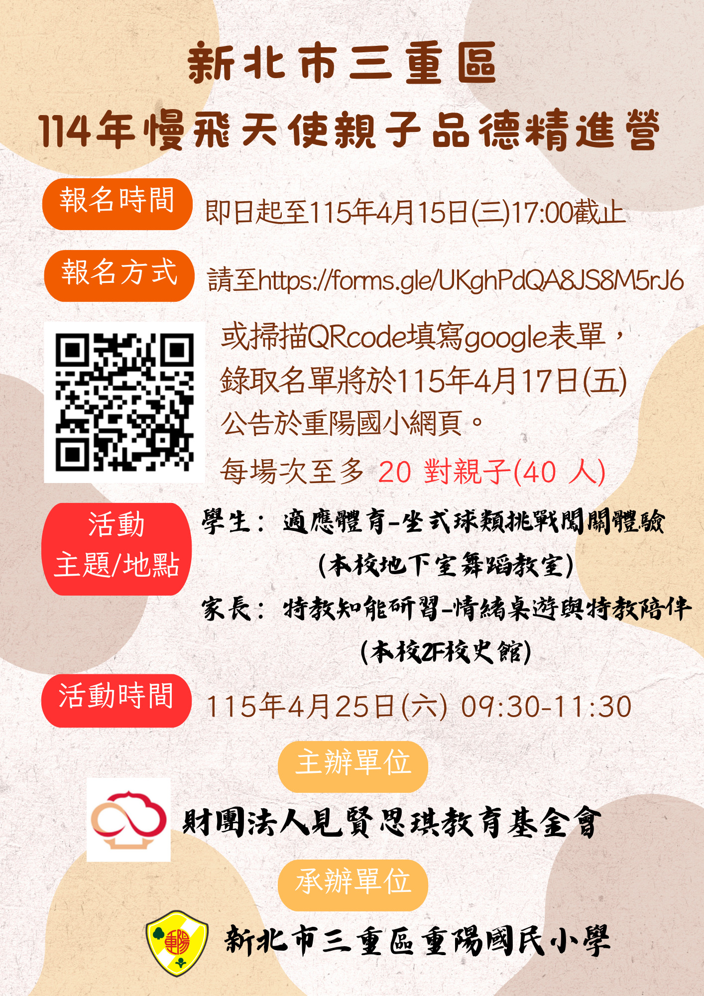 由重陽國小與見賢思琪教育基金會合辦,歡迎親子一同報名參加!
