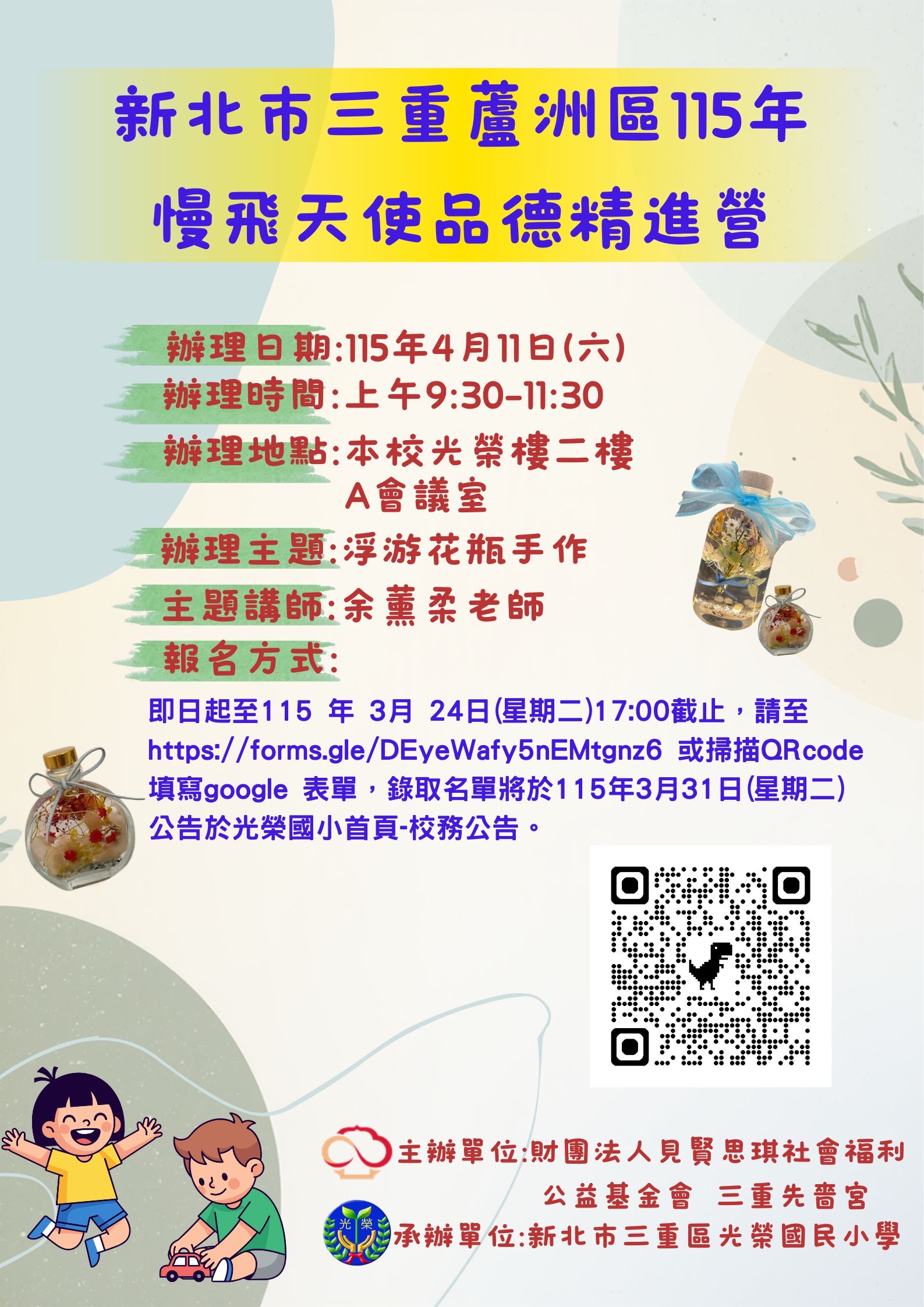 慢飛天使品德精進營由光榮國小與見賢思琪教育基金會合辦,歡迎大家報名參與
