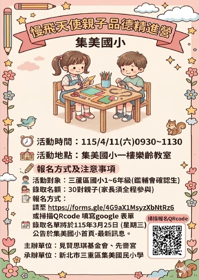 慢飛天使品德精進營由集美國小與見賢思琪教育基金會合辦,歡迎大家報名參與